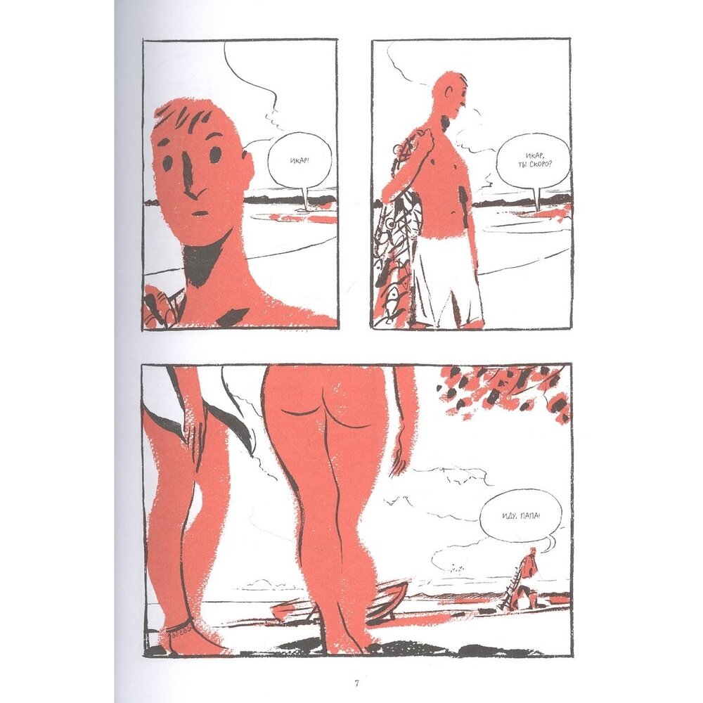 Но как только начал читать после первой главы сразу понял это интересное чтиво. История нарисована так как будто сморишь мультфильм. Автор придумал произведение на основе греческой мифологии про Дедала и его сына Икара которых заточили в лабиринт и они выбрались благодаря воску и перьям чаек. Тут переплетаются 2 истории (1 в нашем мире 1 в дреквней Греции)