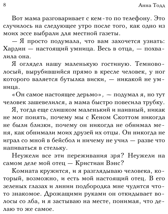 Счастливый конец Хессы.я так переживала за них, больше чем за себя. Хардин и Тесса они многое прошли, любимая книга навсегда останется у меня в сердце. Я буду перечитывать снова и снова. Спасибо Анне Тодд за то что она подарила нам Хессу. Спасибо издательство за то что издали ее и красивая обложка.