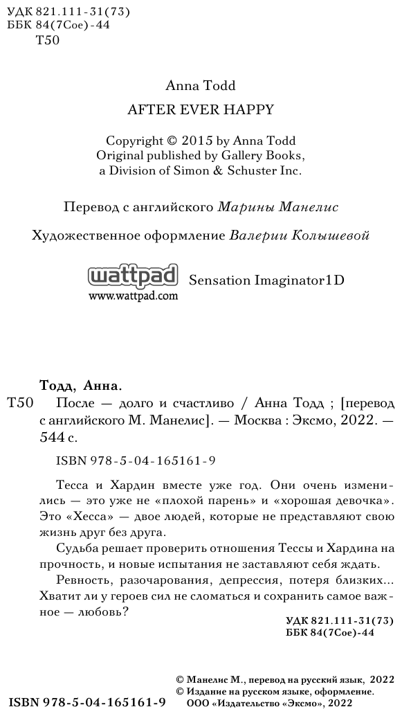 Анна Тодд "После - долго и счастливо". Издательство Эксмо. 544 страниц.