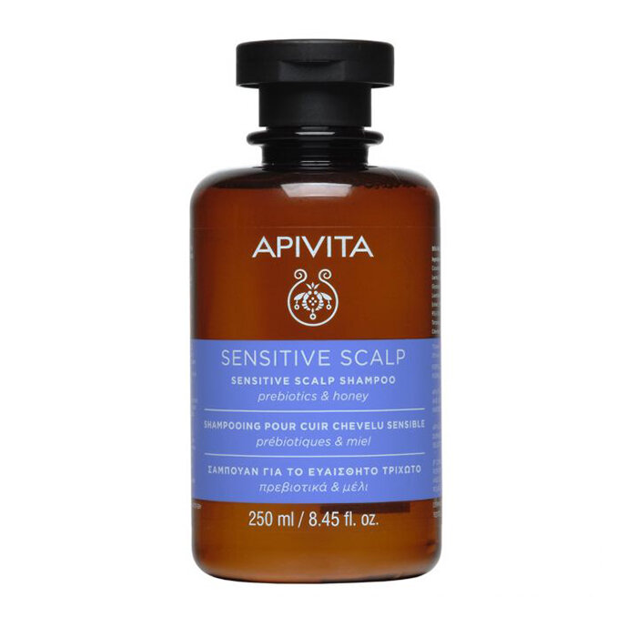 Чувствительная и раздраженная кожа головы требует особого ухода, ей необходимо бережное очищение и увлажнение. Шампунь для чувствительной кожи головы Apivita с пребиотиками и медом: