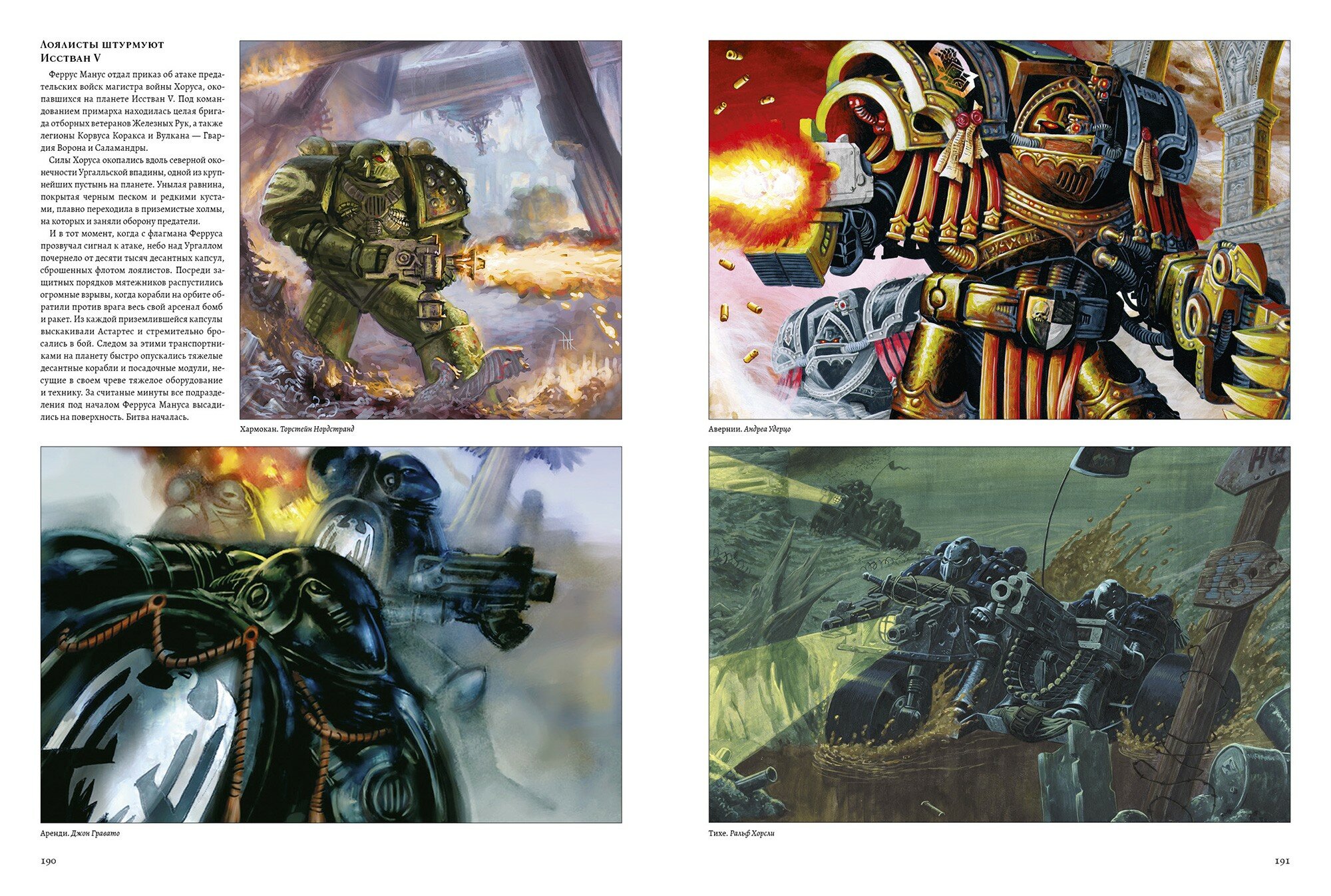 Из пепла Великого крестового похода выросло предательство. Хорус, всегда бывший первым среди сверхлюдей-примархов и недавно назначенный магистром войны, обратился против Императора и заключил союз с темными силами Хаоса. Имея под началом половину всех армий растущего Империума, он положил глаз на трон Священной Терры и развязал конфликт, который навсегда разделит Галактику. Образы войны, картины тьмы, измены и смерти — все это и многое другое представлено здесь, в книге, посвященной Ереси. На ее страницах собраны хрестоматийные изображения легионов Космодесанта и героев, что командовали ими, в том числе работы знаменитого художника Нила Робертса. К иллюстрациям прилагаются исторические справки по вселенной Warhammer 40,000, которые составил Алан Меррет и обновил Гай Хейли. В этом исправленном и дополненном издании, идеальном сопроводительном материале к «Ереси Хоруса» (серии-бестселлеру по версии New York Times) вы найдете исчерпывающие сведения о борьбе Луперкаля с Императором. Здесь с невиданными прежде подробностями излагается сюжет саги — вплоть до Осады Терры, определившей облик целой эпохи. Узрите конец старой эры и начало чего-то гораздо более мрачного, ведь «Ересь Хоруса» продолжает развиваться...
