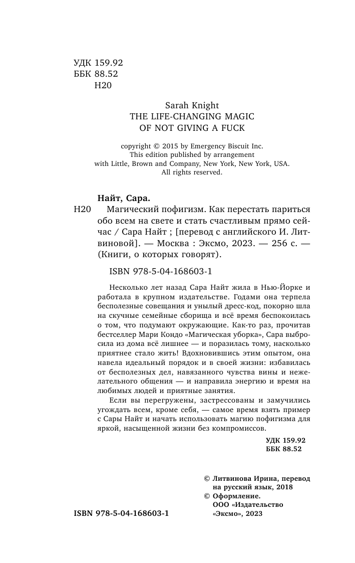 Магический пофигизм Как перестать париться обо всем на свете и стать счастливым прямо сейчас (Сара Найт); Эксмо, 2022