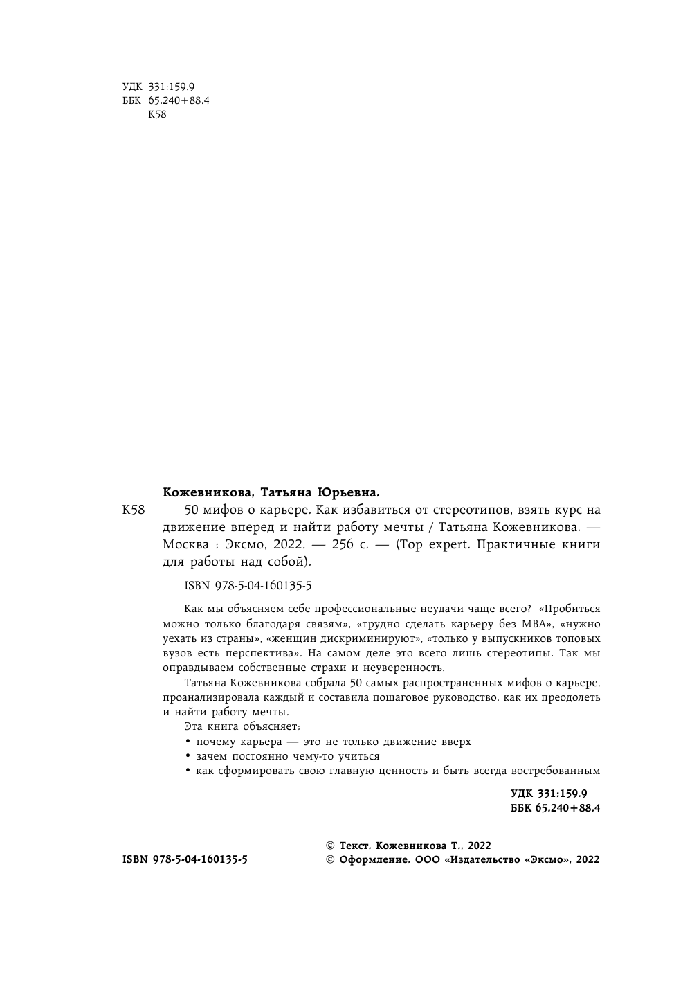 50 мифов о карьере. Как избавиться от стереотипов найти работу мечты и взять курс на регулярное повышение (Кожевникова Татьяна Юрьевна); ООО "Издательство "Эксмо", 2022