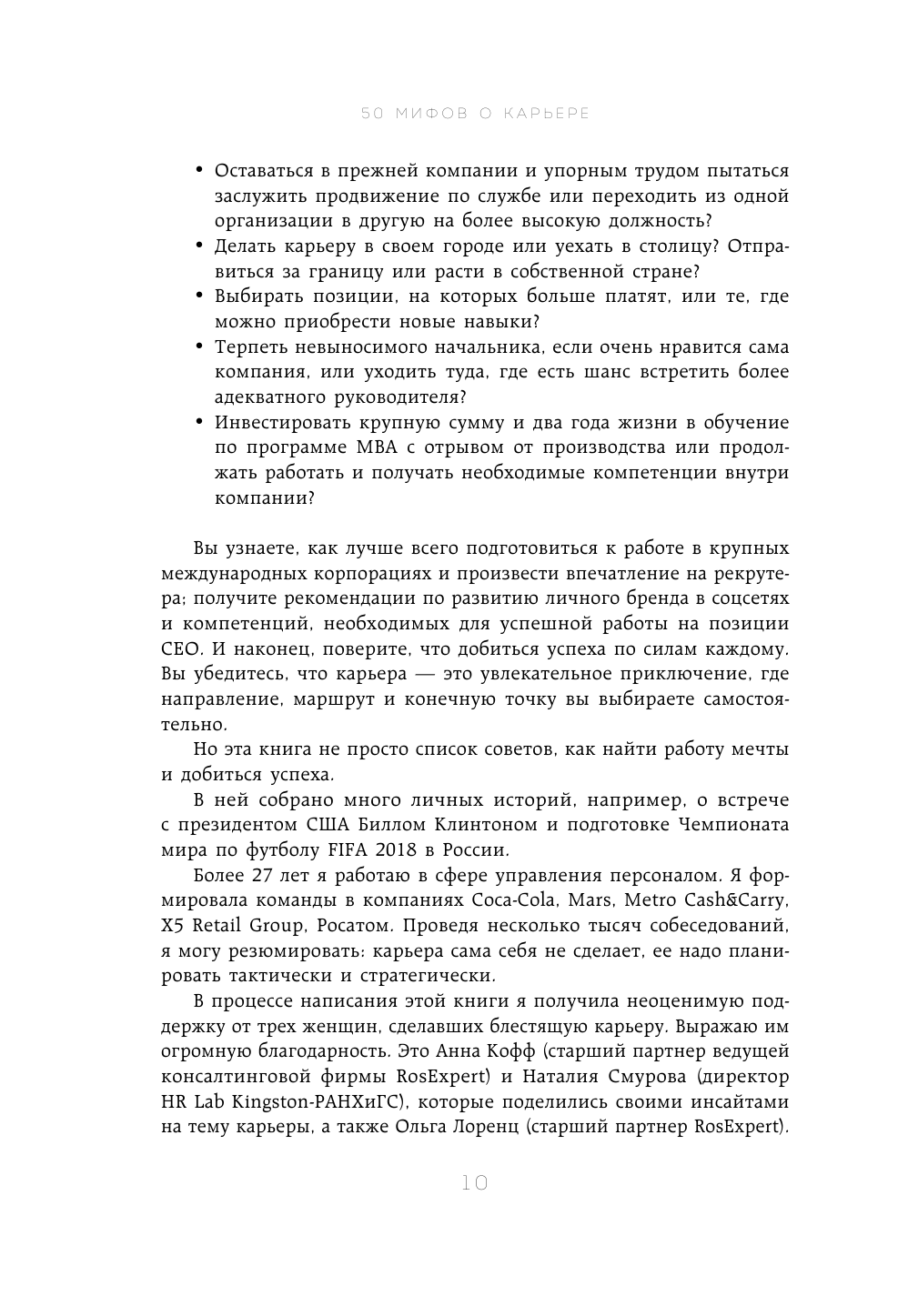 Книга, которая расширяет кругозор об особенностях работы и продвижения по карьерной лестнице в крупных компаниях, международных и госкорпорациях. Автор уделяет внимание важности непрерывного образования, деловой репутации, нетворкингу. Список тем хорошо представлен в оглавлении.