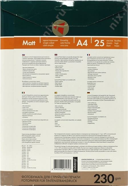 Матовые бумаги Lomond используются для печати фотореалистичных проспектов, рекламных листков, портфолио, фотопортретов и проч. Для легких сортов рекомендуется умеренная «заливка» листа чернилами. Бумаги средней и высокой плотности используются при интенсивной «заливке». Чернила быстро впитываются и сохнут. Поэтому практически сразу можно печатать на обратной стороне.