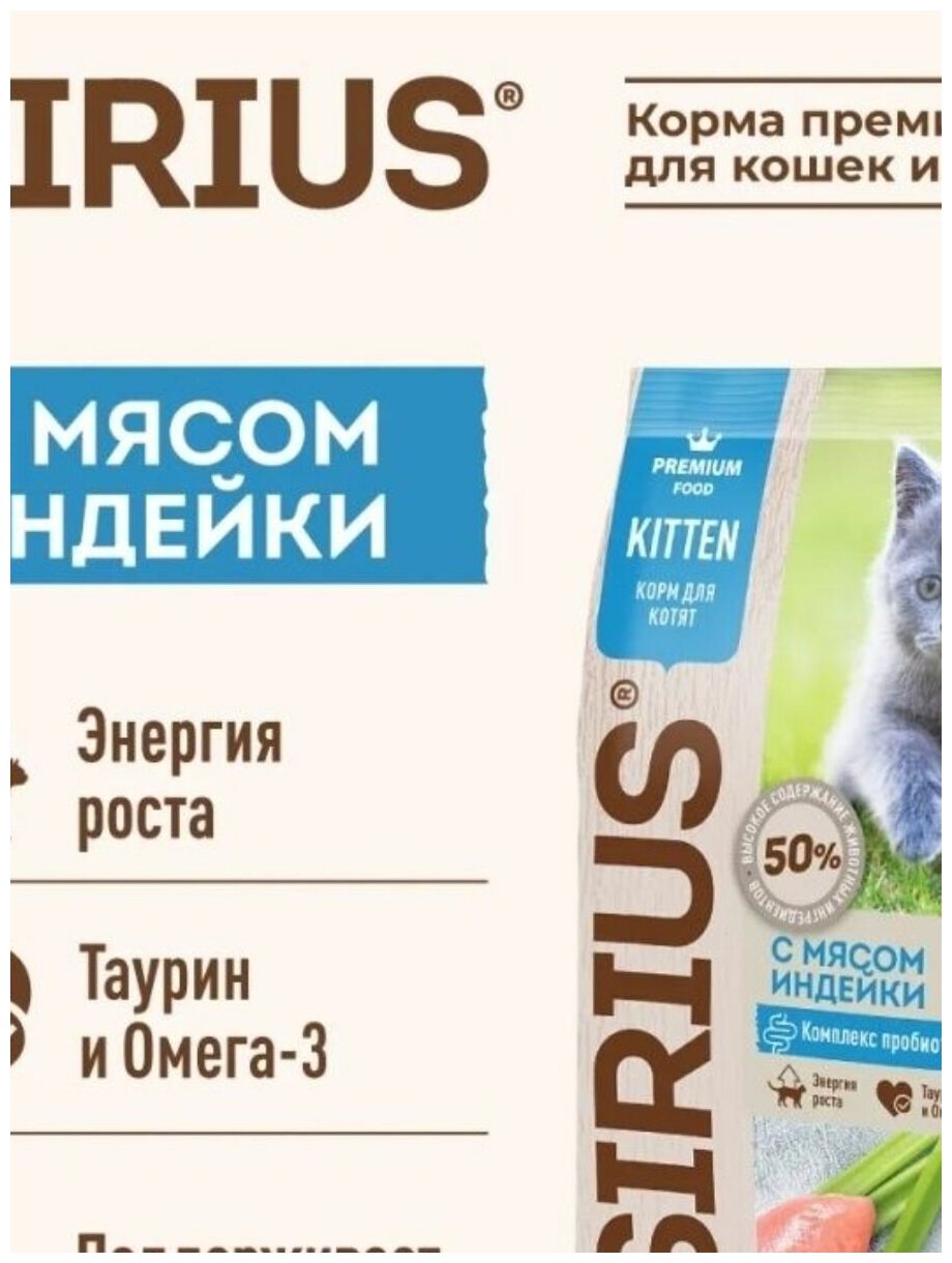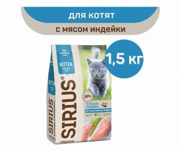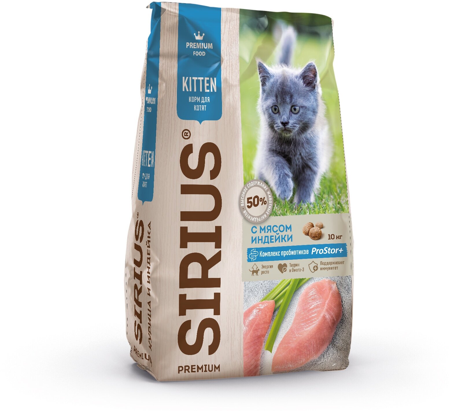 SIRIUS — сухой корм премиум класса для полноценного ежедневного рациона котят с 1-2-х месяцев до 1 года. Высокое содержание мясных ингредиентов обеспечивает оптимальный уровень белка и укрепляет мышцы. Баланс витаминов и комплекса пробиотиков 4-го поколения PROSTOR+ нормализует пищеварение и укрепляет иммунитет. Омега 3 и Омега 6 способствуют поддержанию здоровья сердца, мозга, нервной системы, здоровья кожи и красоты шерсти. Специально подобранный размер гранулы для котят.