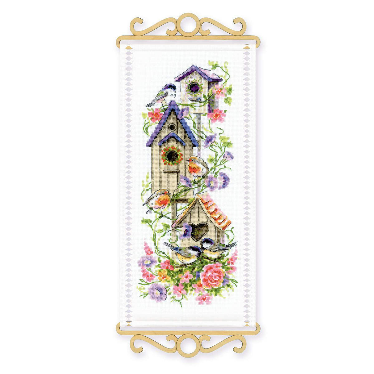 В наборе: канва Aida 14 ct белая, нитки Anchor, 2 вешалки, игла, схема, инструкция.