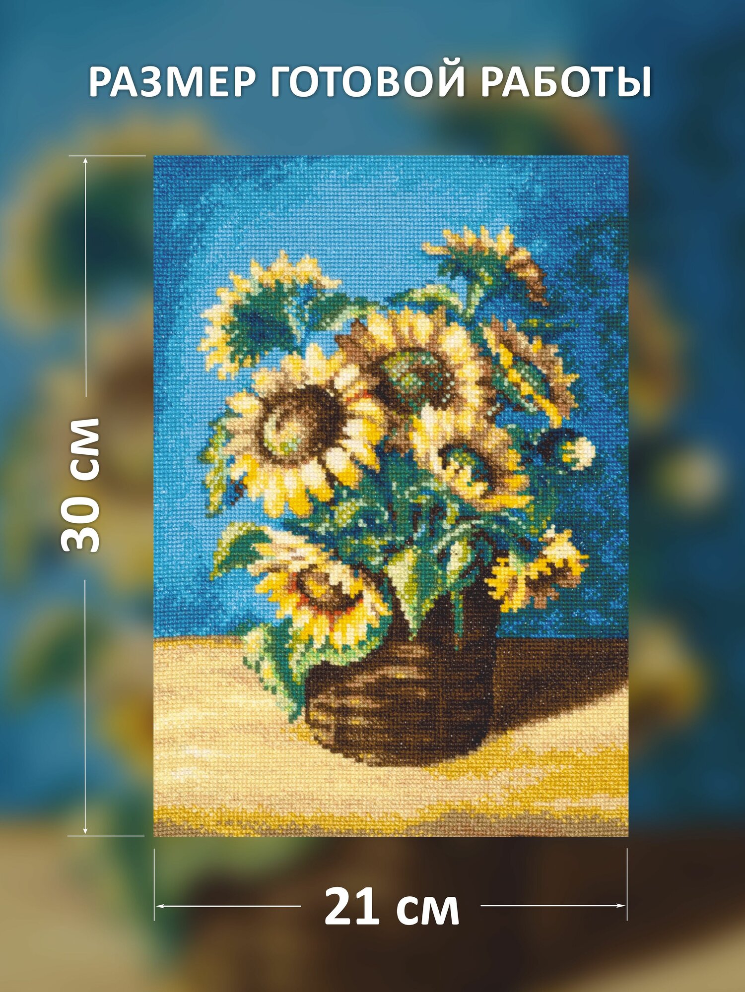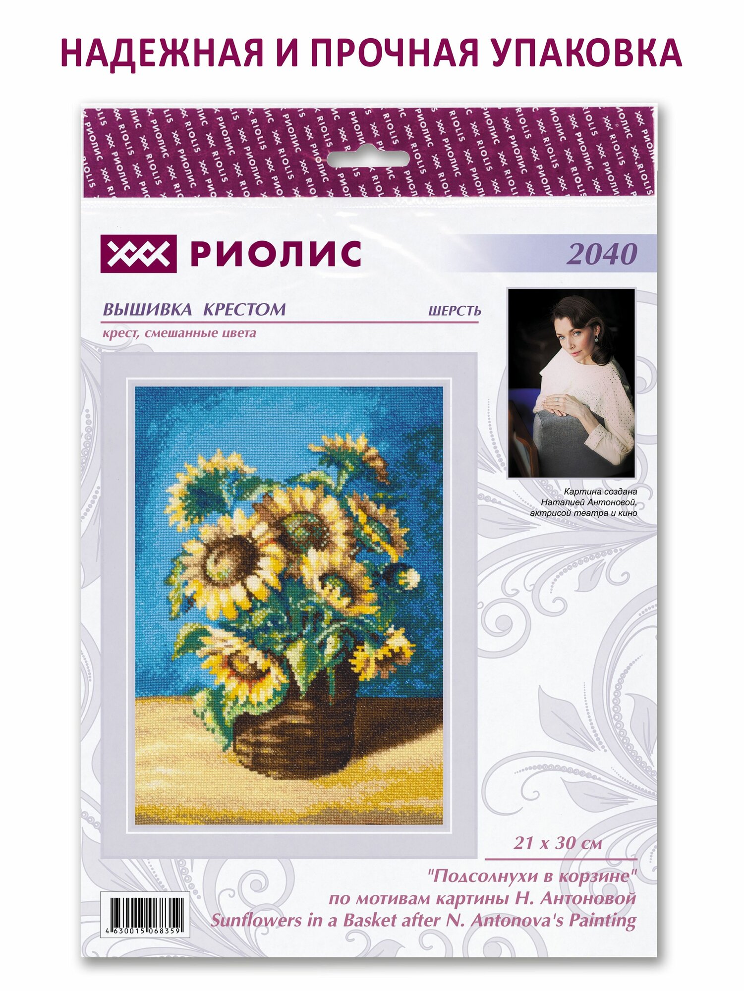 Чтобы вышивать крестиком, не потребуются особые навыки достаточно проявить терпение, усидчивость и аккуратность. В наборе для вышивки крестом 'Подсолнухи в корзине' по мотивам картины Н. Антоновой используются шерстяные мулине они позволяют плотно зашивать сетчатую канву Aida 14, стежки получаются матовыми, достаточно объемными. Следуйте инструкции, выкладывайте равномерные стежки, и постепенно из-под вашей иглы начнет 'проступать' картина со сложной гаммой, плавными цветовыми переходами. Совет: если вам не хватает опыта, сделайте разметку канвы, ориентируясь по схеме. Разметка поможет вам быстрее закончить вышивку и избежать возможных ошибок. При необходимости осторожно постирайте вышивку вручную в прохладной воде с небольшим количеством мыла, чтобы не допустить усадки. В наборе: канва Aida 14 белая, нитки шерсть/акрил, игла, схема, инструкция. Количество цветов: 29.
