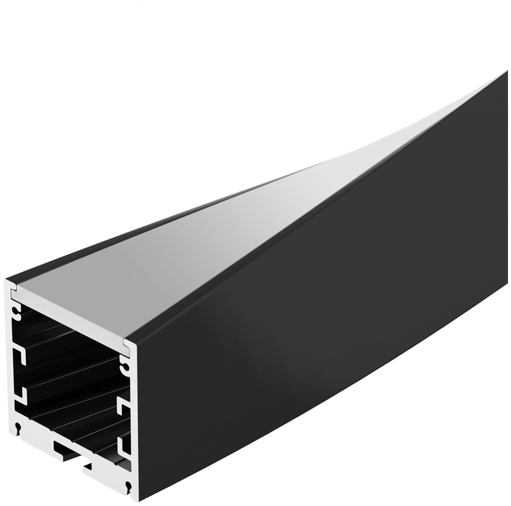 Подвесной алюминиевый профиль черного цвета (RAL9005 порошковая окраска), скрученный на 180°, для декоративного освещения. Используется для составления световых систем сложной геометрии. Габаритные размеры профиля составляют 500 мм в длину, 35 мм в ширину и 35 мм в высоту. Площадка для установки светодиодных лент позволяет использовать ленту шириной до 24 мм и мощностью до 37,4 Вт/м. Это обеспечивает гибкость в выборе светодиодных лент и создает потрясающие световые решения. Отличное решение для создания современных световых проектов.
