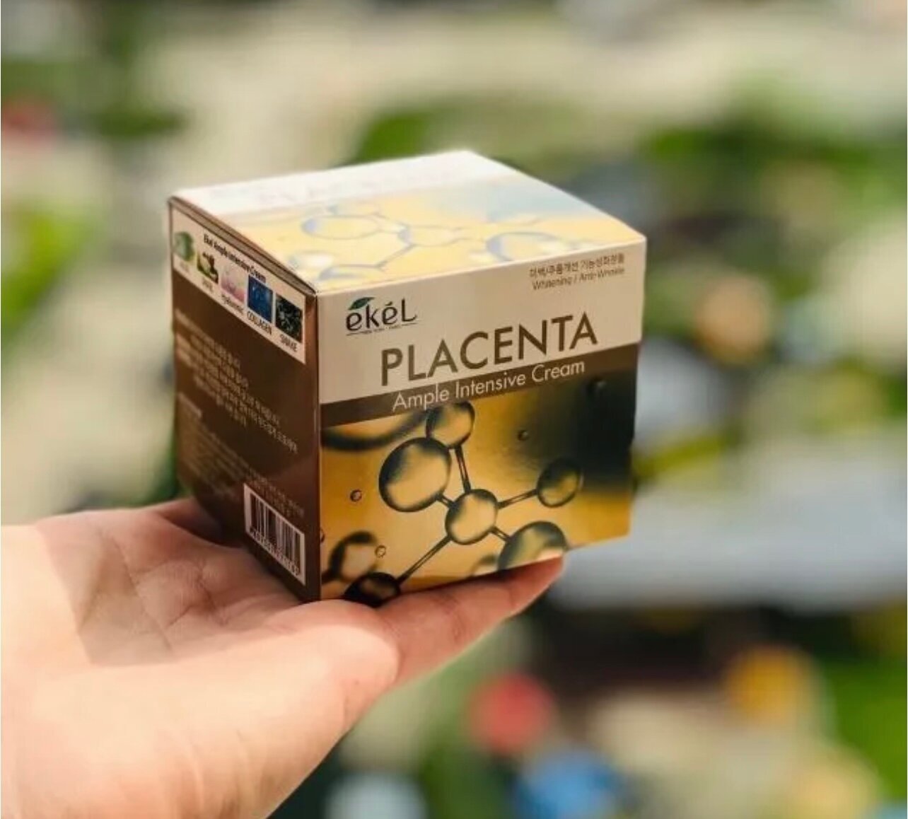 Крем для лица с плацентой EKEL Ample Intensive Cream Placenta содержит плацентарный протеин, безопасный и высокоэффективный ингредиент, уменьшающий активность тирозиназы и оказывающий выраженное отбеливающее действие, а также, благодаря большому содержанию аминокислот, активно питающий, оживляющий и омолаживающий кожу, стимулирующий регенерацию клеток и повышающий упругость кожи. Ниацинамид, входящий в состав крема, уменьшает возрастную пигментацию и выравнивает тон кожи, гиалуроновая кислота и берёзовый сок улучшают увлажнённость, аденозин и экстракт малины разглаживают кожу и оказывают антиоксидантное действие, замедляя старение и предотвращая образование морщин. Крем содержит ценные, чистые и природные ингредиенты, которые создают увлажнённый барьерный слой и успокаивают чувствительную кожу, защищая её от агрессивного воздействия внешней среды.