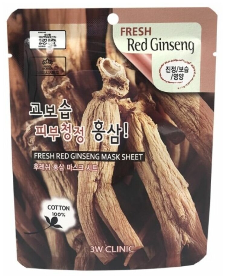 Тканевая маска для лица с экстрактом корня красного женьшеня Fresh Red Ginseng Mask Sheet 3W Clinic (370105)