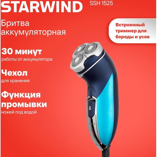 Бритва роторная Starwind SSH 1525 голубой/черный