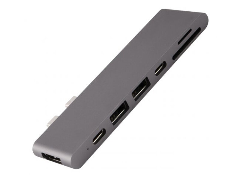 Barn&Hollis Multiport Adapter - это мультизадачный адаптер, возьмите его с собой на рабочее место и почувствуйте силу ультрапортативности. Он оснащен двумя портами Type-C, разъемами для карт TF и SD, двумя портами USB и разъемом HDMI. Благодаря дизайну «включай и работай» и современной алюминиевой отделке никогда не было так просто подключить установку к работе.