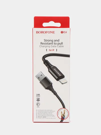 Дата-кабель Borofone предназначен для передачи данных между мобильными устройствами с разъемом Lightning и компьютером, а также для подзарядки аккумулятора от USB порта ПК или сетевого ЗУ. Прочный кабель разработан с учетом реальных условий эксплуатации, он обладает оптимальной длиной для подключения. Медный проводник обеспечивает стабильную передачу сигнала.