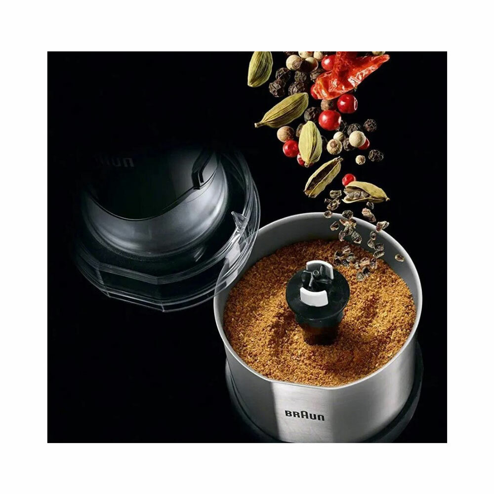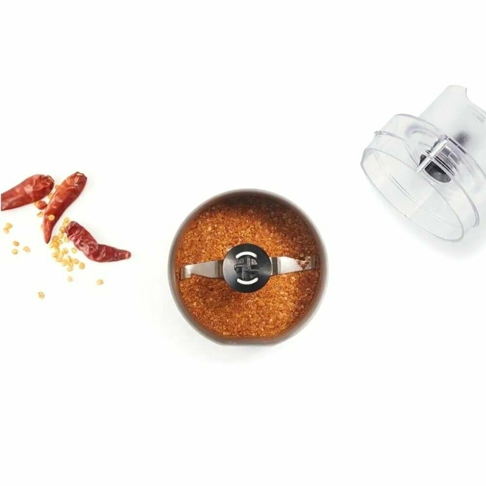 | Особенности | Идеально подходит для перемалывания кофейных зерен, специй и пряностей, сахара и сухих ингредиентов за секунды Прорезиненное противоскользящее основание Съемные ножи |