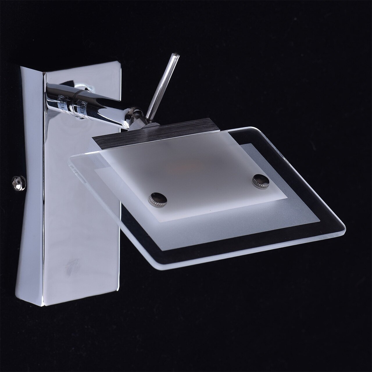 Основание светильника выполнено из нержавеющей стали. Корпус светильника выполнен из сплава алюминия и гальванизирован в цвет хрома. Плафоны выполнены из белого матового стекла.