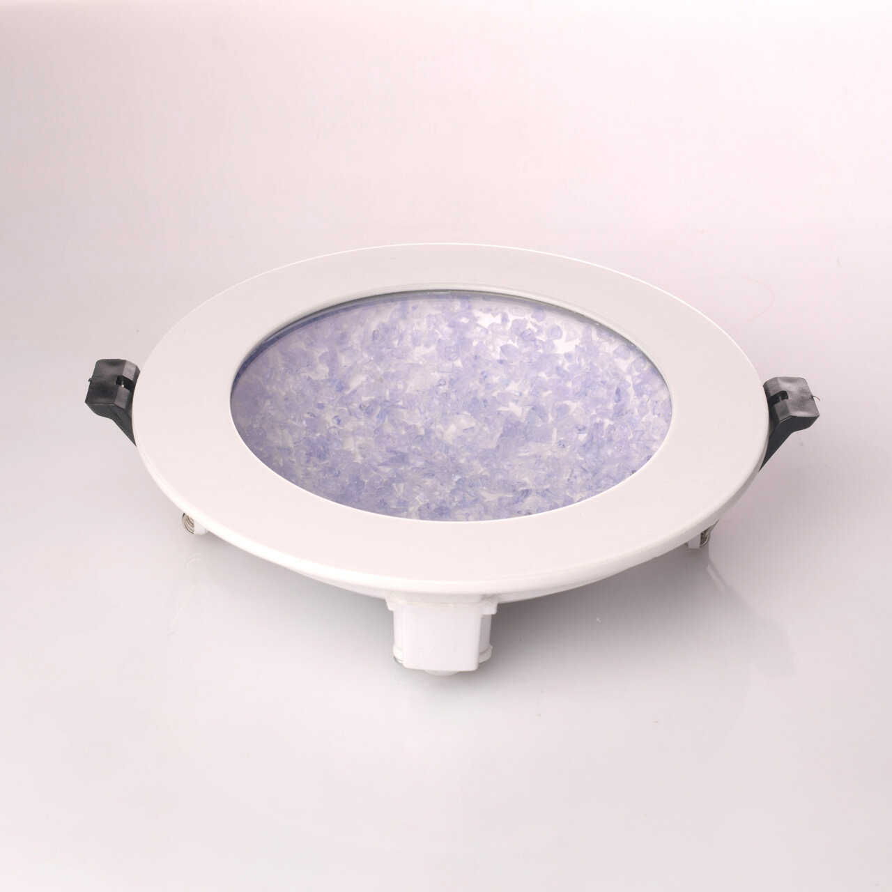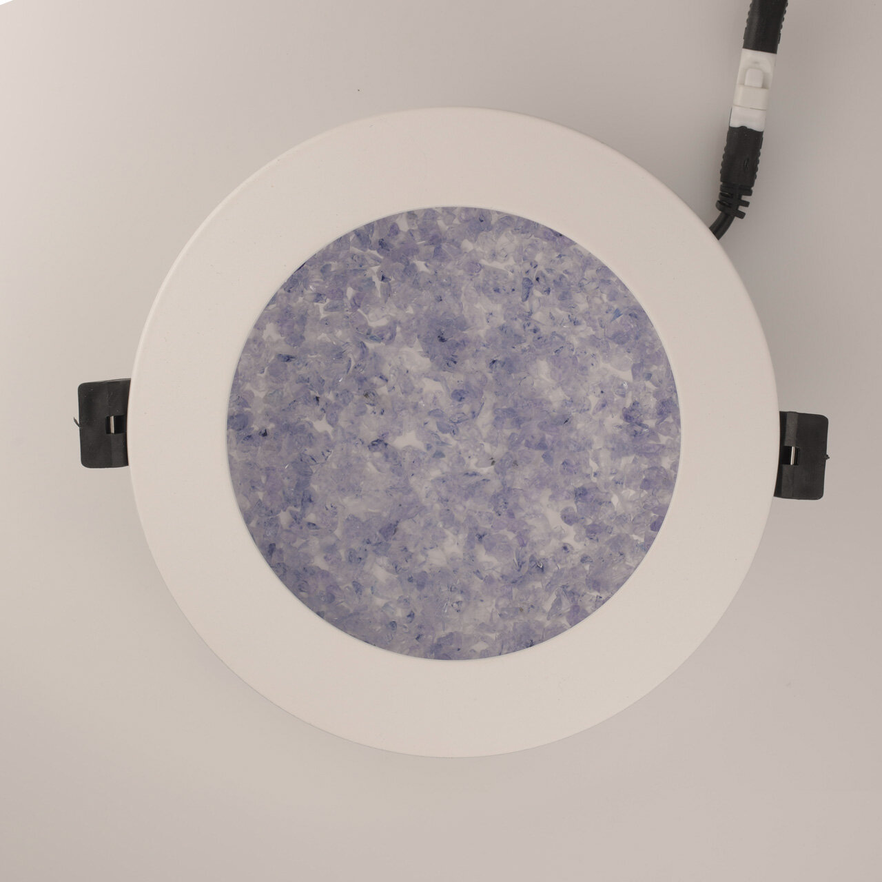Светодиодные источники света типа SMD Strip закрыты прозрачным стеклом. Цветная стеклянная крошка.