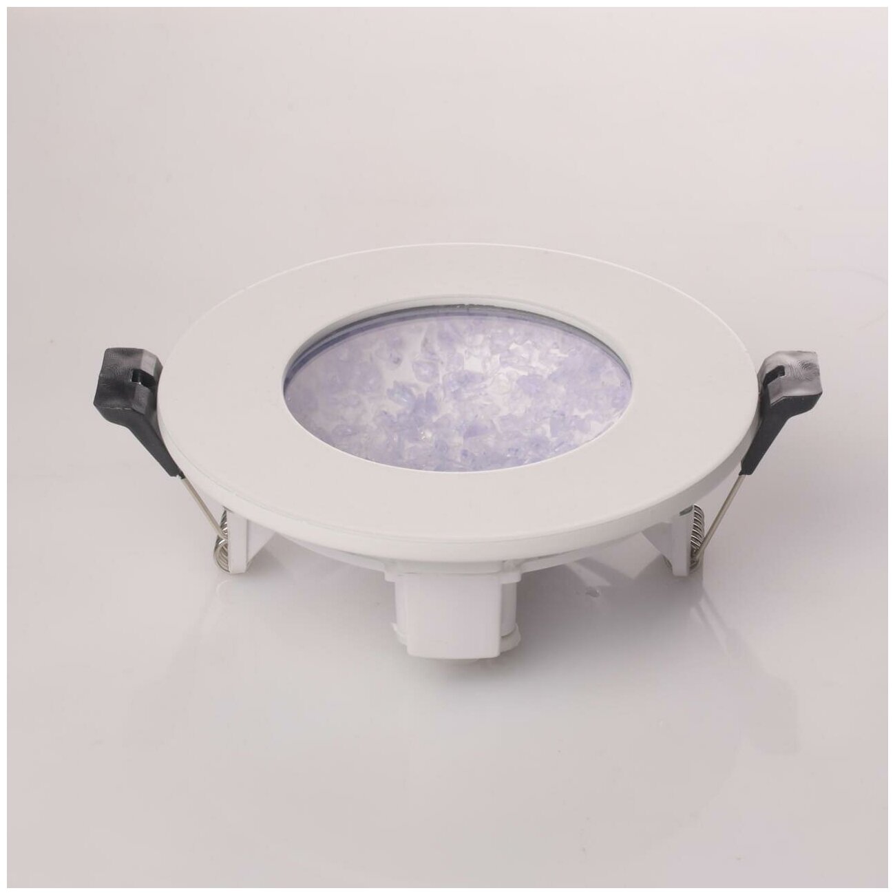 Светодиодные источники света типа SMD Strip закрыты прозрачным стеклом. Цветная стеклянная крошка.