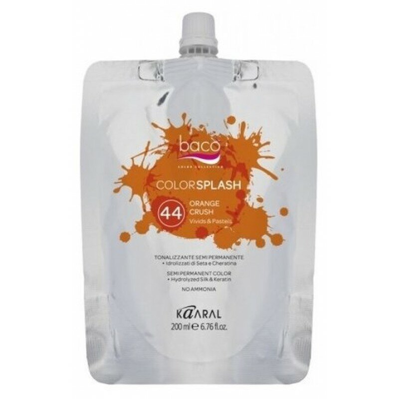 Серия Kaaral Baco Color Collection пополнилась 9 новыми креативными оттенками и 1 нейтральным для ярких и пастельных окрашиваний. В составе продукты Витамина А и Е и эффективные, мощные антиоксиданты, чтобы защитить волосы от негативного воздействия и сделать их мягкими и гладкими. Формула Baco Color Splash не содержит аммиак! Ключевыми ингредиентами являются: Экстракт цветка голубого лотоса. Содержит биофлавоноиды, такие как кверцетин и рутин, которые имеют свойства антиоксиданта и противовоспалительные свойства. Это увеличивает стойкость цвета. Масло Баобаба. Является отличным увлажнителем и идеально подходит для укрепления кератина в волосах. Масло защищает кожу от свободных радикалов. Нежирный смягчитель для волос, отличается своей способностью придавать блеск и глубоко проникать в пряди волос.