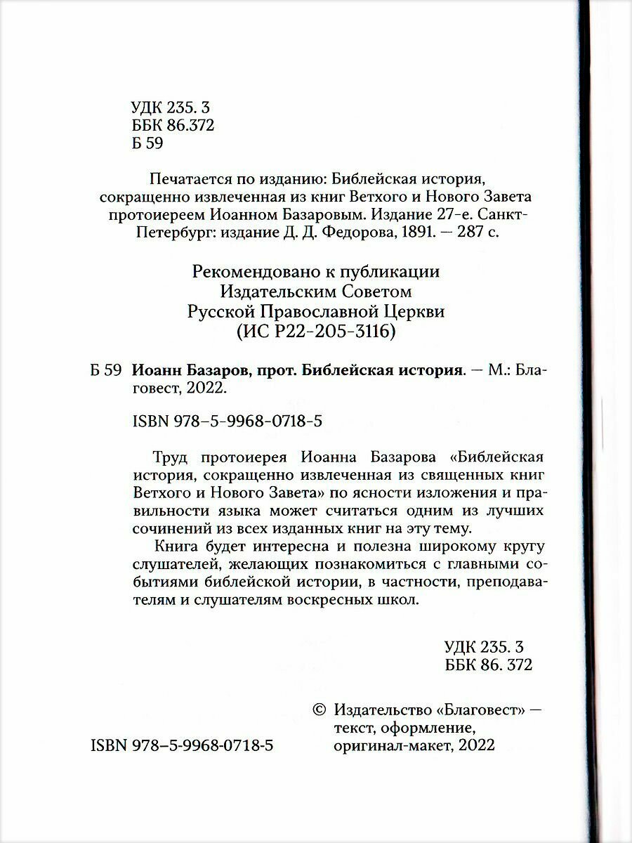 Книга: Библейская история (Иоанн Базаров, протоиерей); Благовест, 2022
