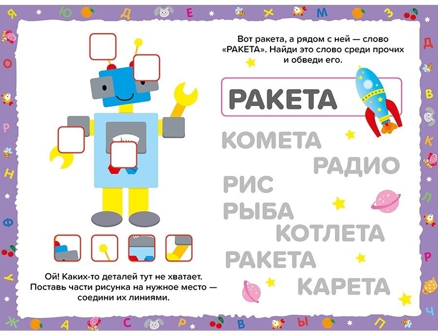 С альбомом развивающих заданий заниматься с ребёнком легко и интересно! В альбоме вы найдете 62 разнообразных нескучных заданий, которые помогут ребёнку: раскрыть его познавательный и творческий потенциал, освоить счёт до 10, а также научиться писать цифры и узнавать буквы.