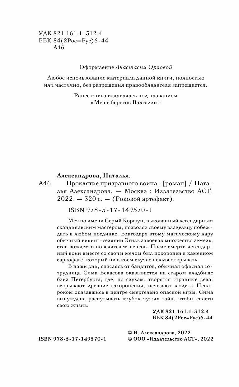Проклятие призрачного воина (Наталья Александрова); Издательство АСТ, 2022