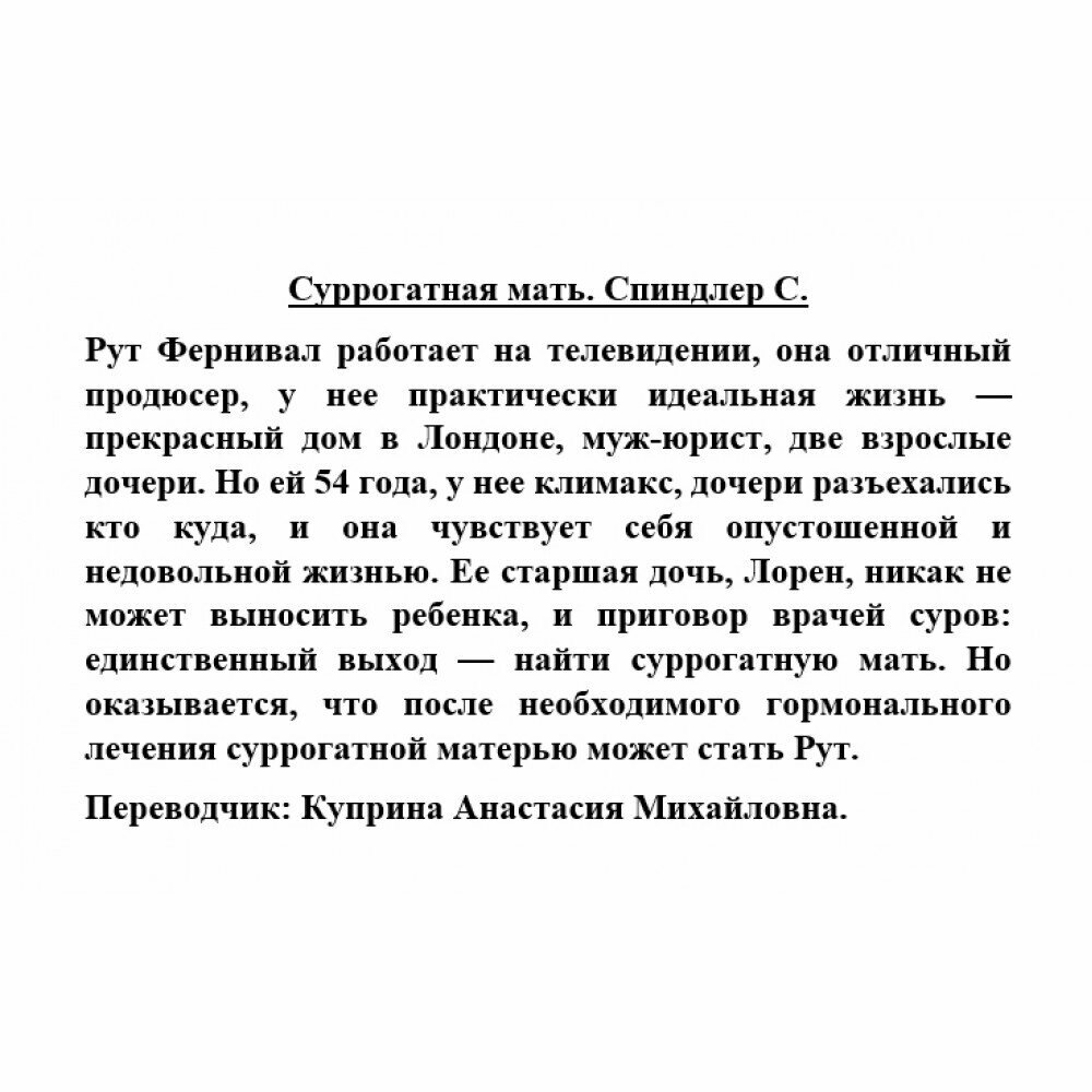 Сервис сравнения цен СкидкаГИД предлагает сравнить цены на товар «Книга: Суррогатная мать (Сьюзен Спиндлер); Издательство АСТ, 2021»