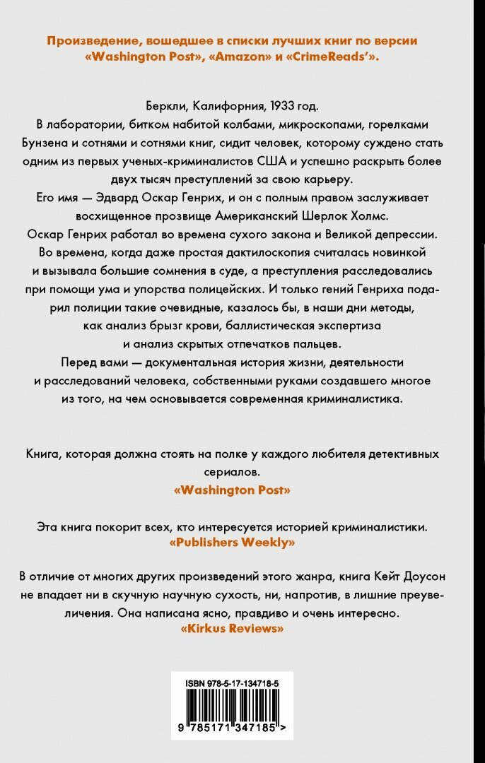 Перед вами — документальная история жизни, деятельности и расследований человека, собственными руками создавшего многое из того, на чем основывается современная криминалистика.