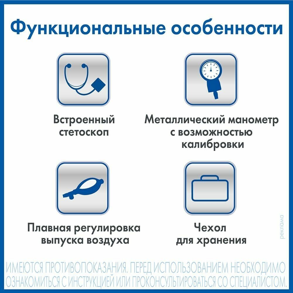 | Комплектация | инструкция по эксплуатации; манжета; сумка для хранения; манометр; стетоскоп; тонометр |