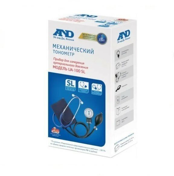 Механический тонометр AND (Эй энд Ди) UA-100 SL со встроенным стетоскопом, стандартной манжетой 23–37 см для средней и полной руки и чехлом для хранения. Механический тонометр UA-100 разработан компанией ЭЙ энд ДИ. Компания ЭЙ энд ДИ – №1 производитель медицинской техники в России по данным АО «Группа ДСМ» по количеству (в шт.) в аптеках России за период 2019-2021 гг. Продукция ЭЙ энд ДИ – это высокое качество и точный выбор! Выбирайте точность! Отличительными функциональными особенностями тонометра UA-100 являются: Встроенный стетоскоп Металлический манометр с возможностью калибровки Противопыльная сеточка на нагнетателе Плавная регулировка выпуска воздуха В комплекте чехол для хранения Гарантия на основной блок (манометр) — 3 года Тонометры АНД — отличная альтернатива устройствам брендов Омрон и B.Well, которые хорошо представлены на российском рынке. Тонометр Omron и тонометр B. Well обладают схожими функциями и возможностями, но модели AND имеют ряд преимуществ. Они отличаются от конкурентов умеренной ценой, могут похвастаться широким модельным рядом и качеством — на производстве используются компоненты из Японии.