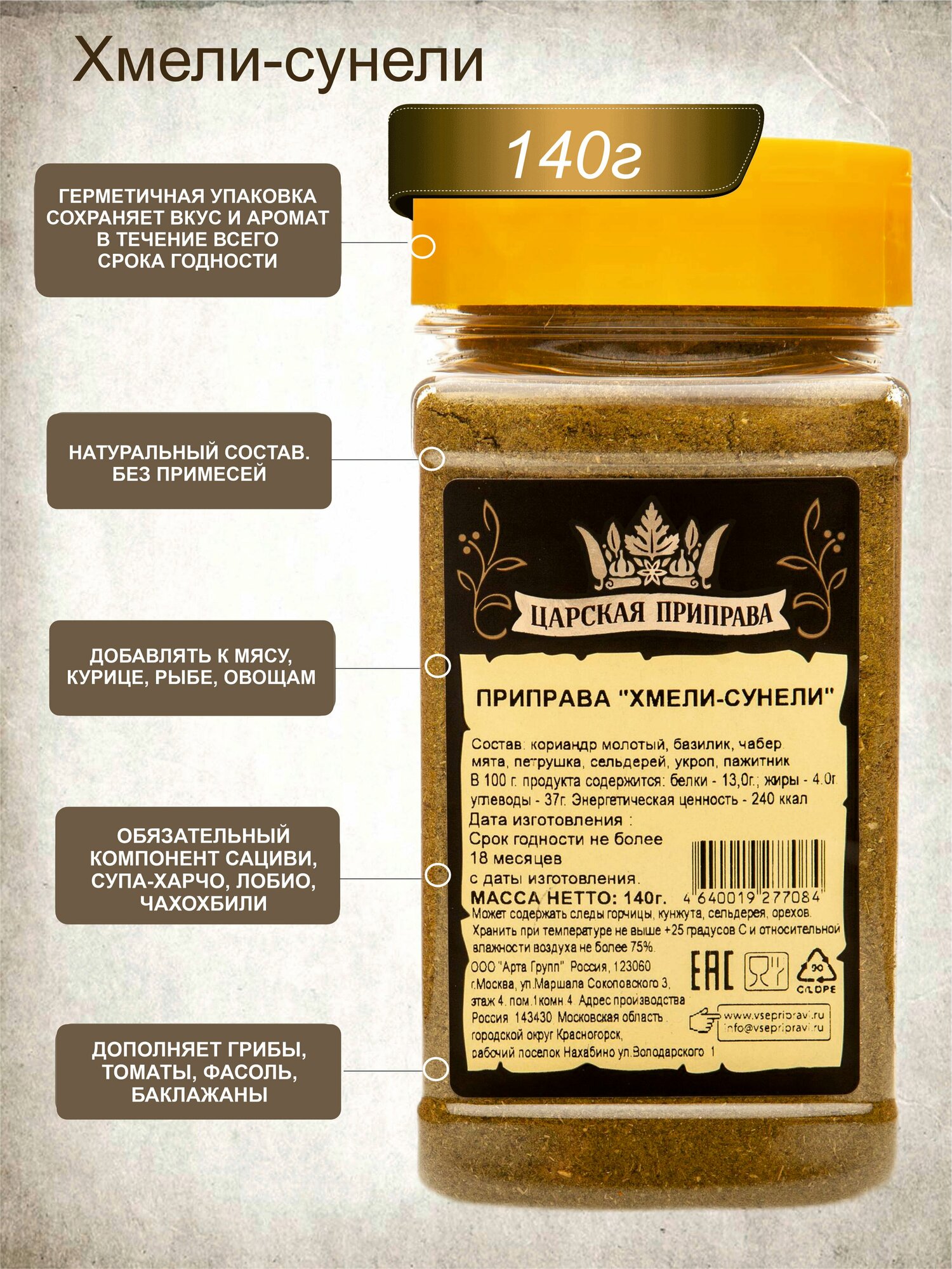 Сервис сравнения цен СкидкаГИД предлагает сравнить цены на товар «Приправа Царская приправа Хмели-сунели 140г»