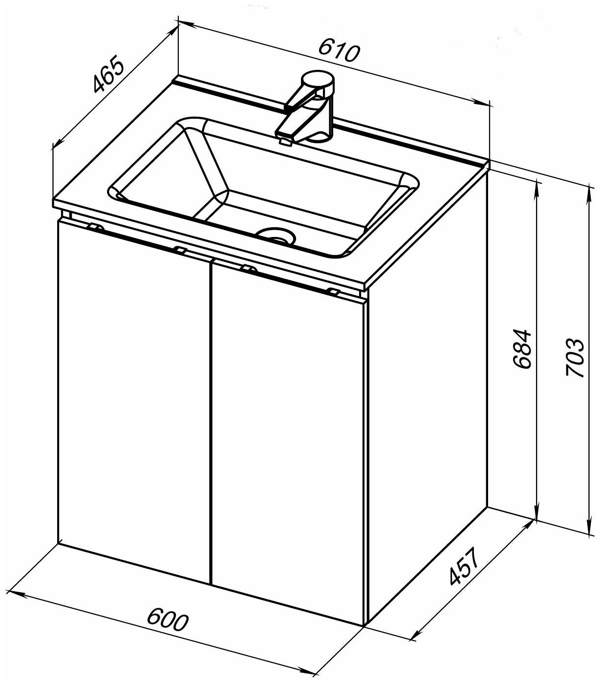 - Габариты корпуса тумбы (ШхВхГ): 600х684х457 мм.