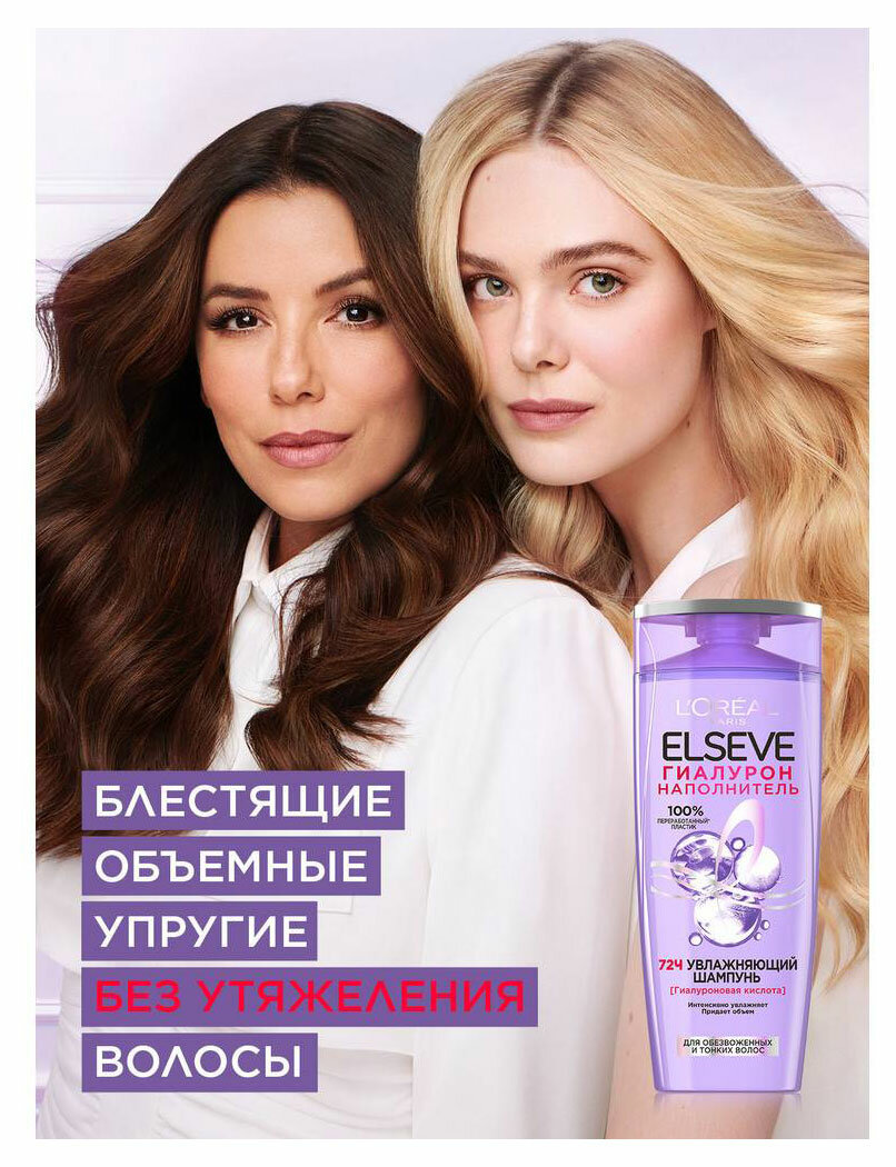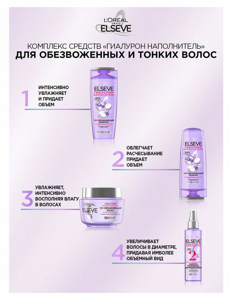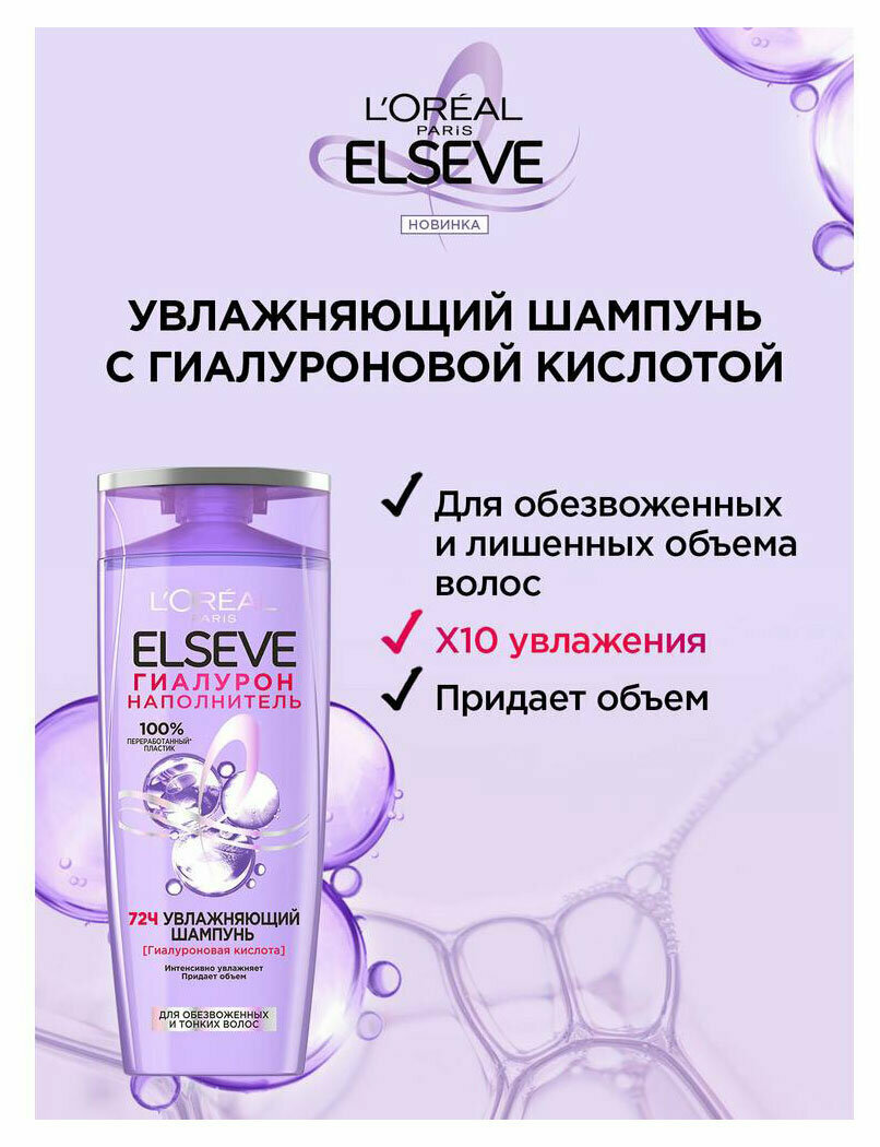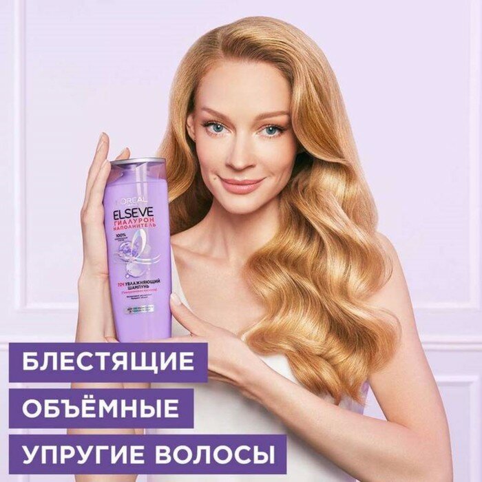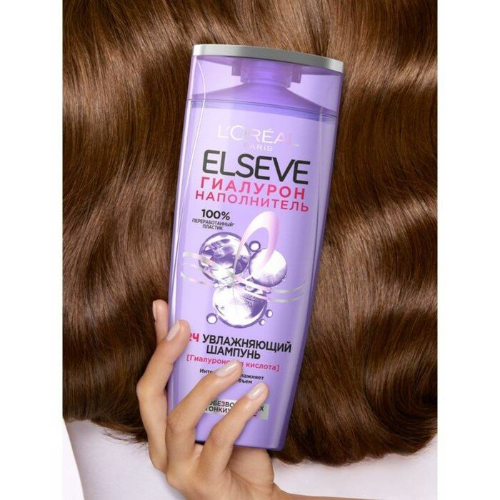 Увлажняющий шампунь Elseve Гиалурон Наполнитель обволакивает кутикулу волоса, интенсивно очищая и восстанавливая посредством увлажнения на 72 часа*.