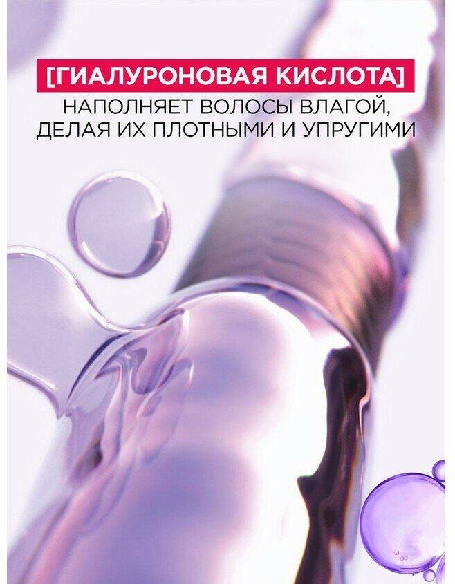 Молекула гиалуроновой кислоты способна удержать воды в 1000 раз больше собственного веса. Как своеобразный водный резервуар, она наполняет волосы влагой, делая их плотными и упругими.