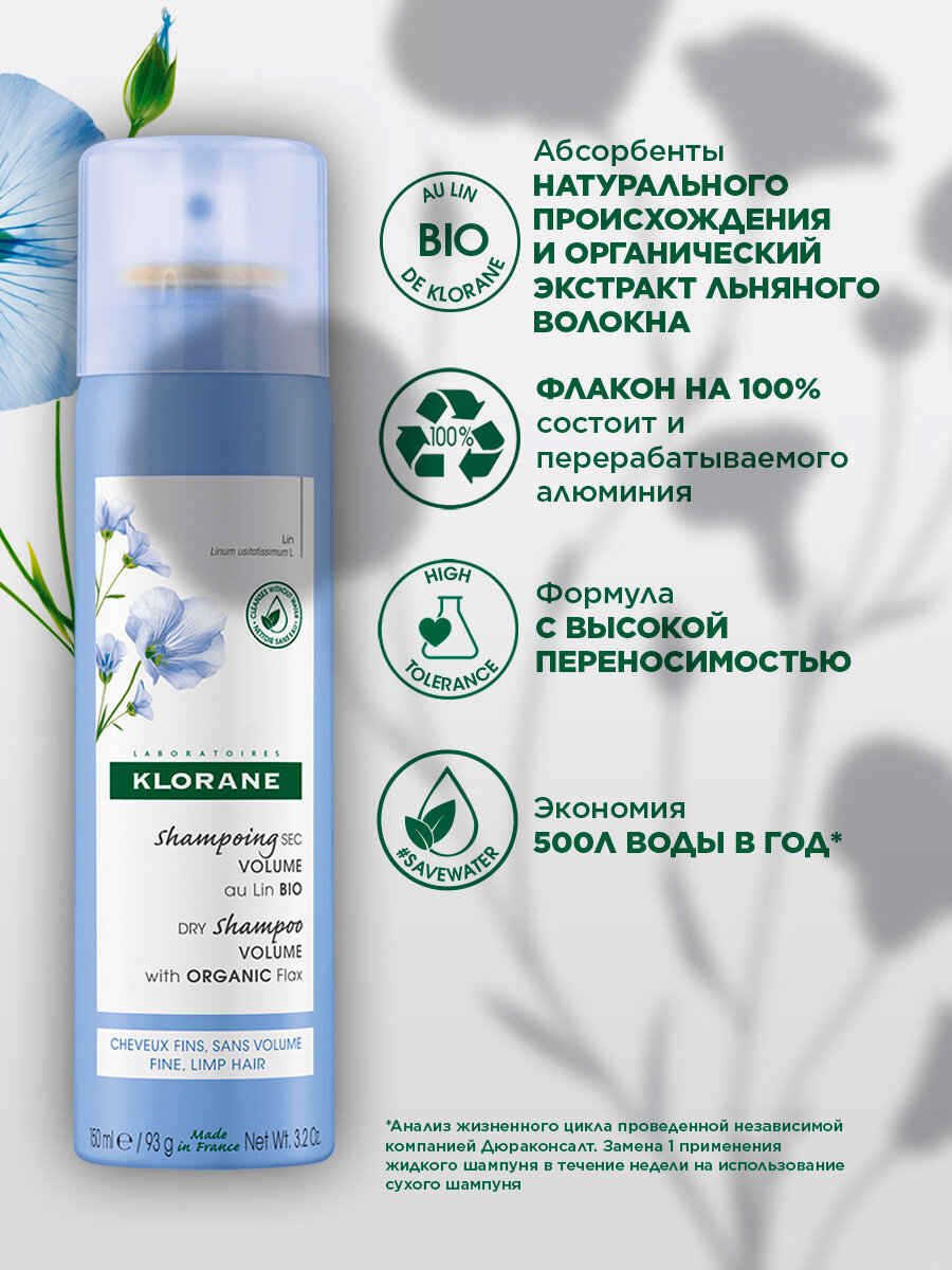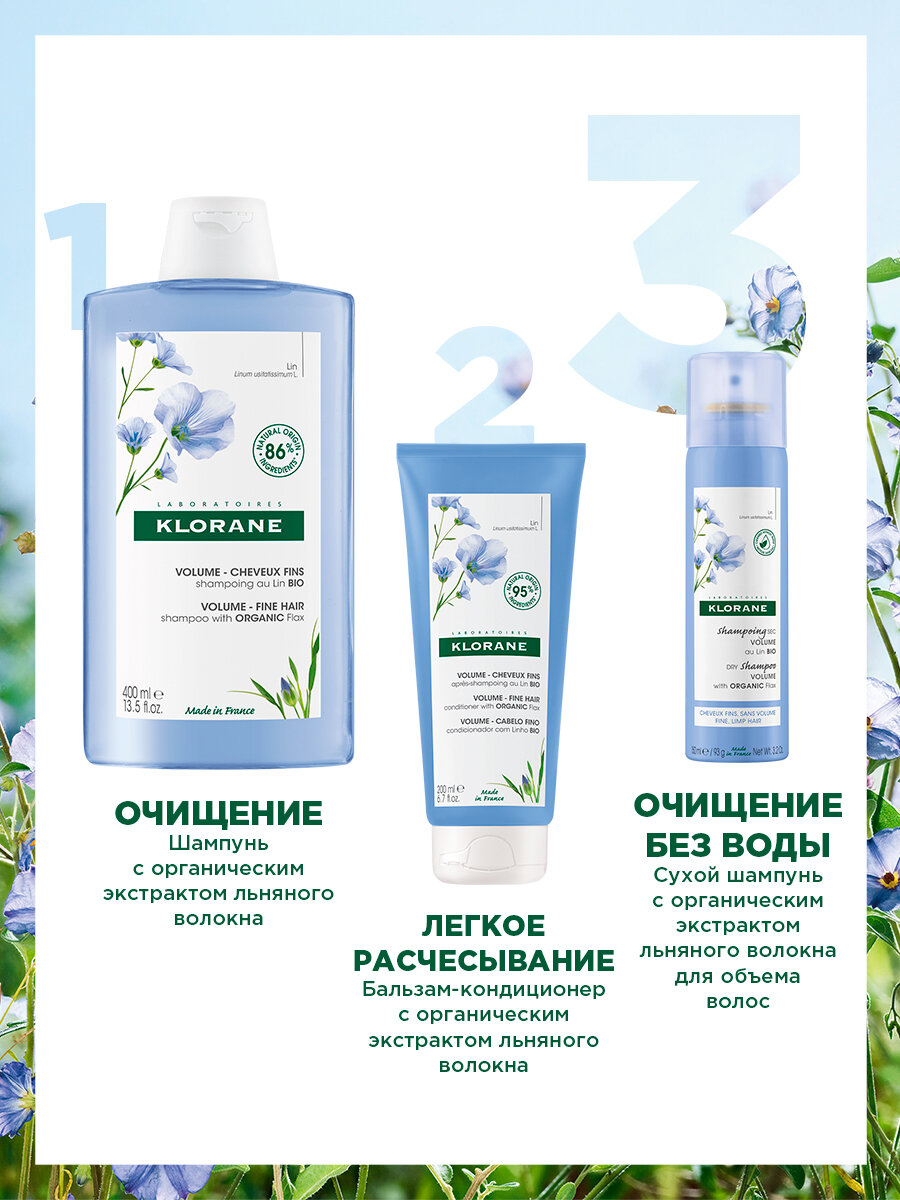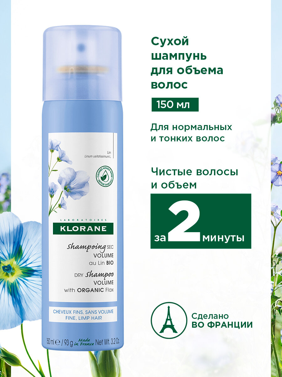 Klorane Сухой шампунь с органическим экстрактом льняного волокна для объёма волос 50 мл (Klorane ) Volume plump
