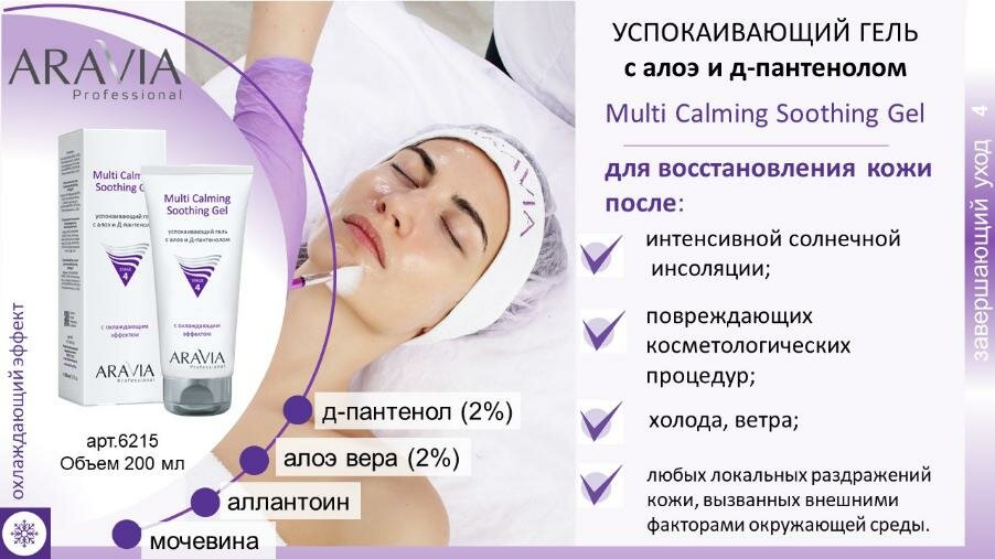 Aravia Professional Успокаивающий гель с алоэ и Д-пантенолом Multi Calming Soothing Gel 200 мл (Aravia Professional ) (ЭХ99989428380)