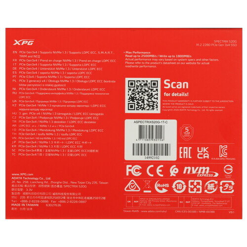 XPG SPECTRIX S20G - целиком и игровой твердотельный накопитель, и это проявляется в его стильной наружности. Необычная и эффектная Х-образная RGB подсветка - вне всякой конкуренции. Световые эффекты RGB настраиваются через программное обеспечение. Для простоты эксплуатации S20G совместим с большинством системных плат (для получения сведений о поддержке и эксплуатации ПО для управления RGB подсветкой обращайтесь на официальный веб-сайт поставщиков системных плат) крупнейших производителей. Кроме того, матовое покрытие придает твердотельному накопителю внушительный, но стильный вид, одновременно пугающий и впечатляющий.