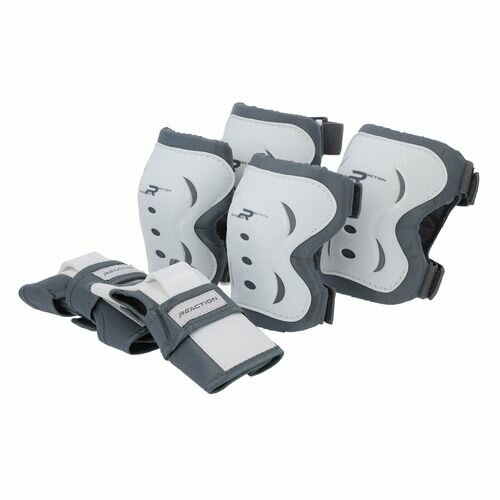 | Вводное описание | Набор Reaction включает все необходимое для безопасного катания на роликовых коньках, самокате или скейтборде: защиту коленей, локтей и запястий. Ударостойкий пластик защищает от травм при падении, а пеноматериал смягчает удар. Регулируемая система фиксации обеспечивает комфорт и свободу движений. |