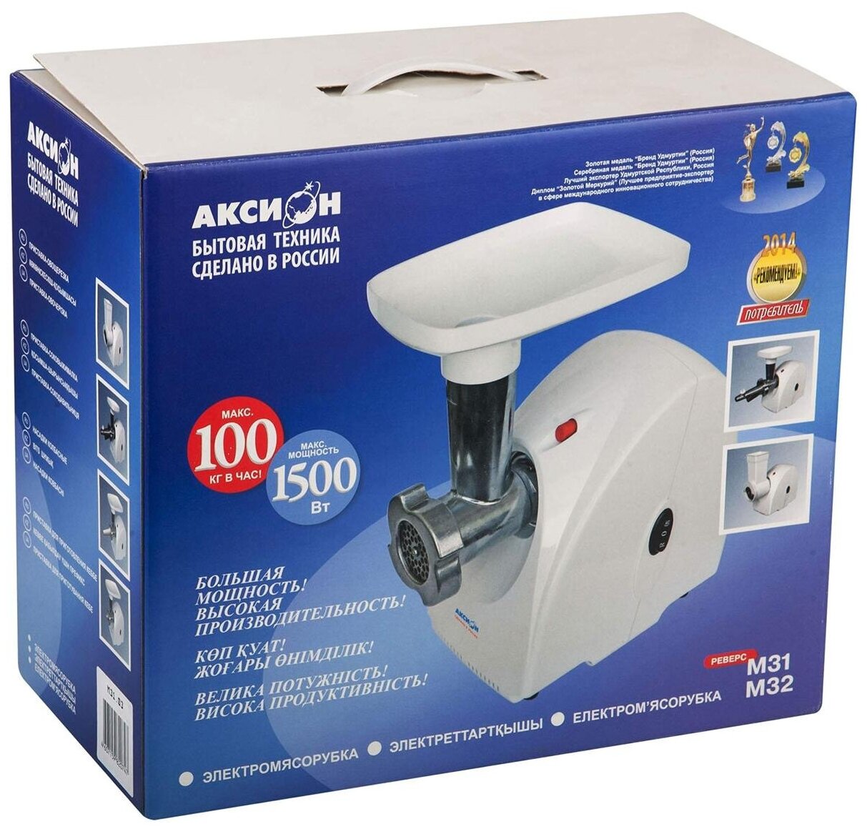 Мясорубка Аксион – это надежный бытовой прибор, способный справиться сразу с несколькими задачами. Снабженная мощным двигателем, она способна очень быстро превращать мясо в фарш. Причем, если на шнеке запутаются жилы, можно заставить его вращаться в обратную сторону (функция реверса) для того, чтобы легко его очистить. Три решетки для фарша с отверстиями разного диаметра и формы дают возможность для выбора степени измельчения мяса.