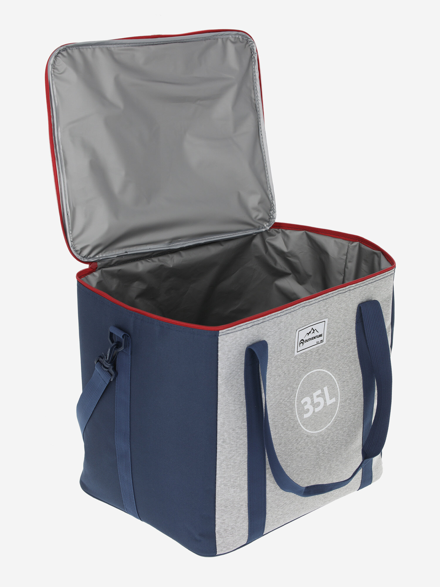 Термосумка из полиэстера. Подкладка выполнена из полиэтиленвинилацетата. Используется вместе с аккумуляторами холода. Детали: объем 35 л, размеры 37x30.5x36 см.
