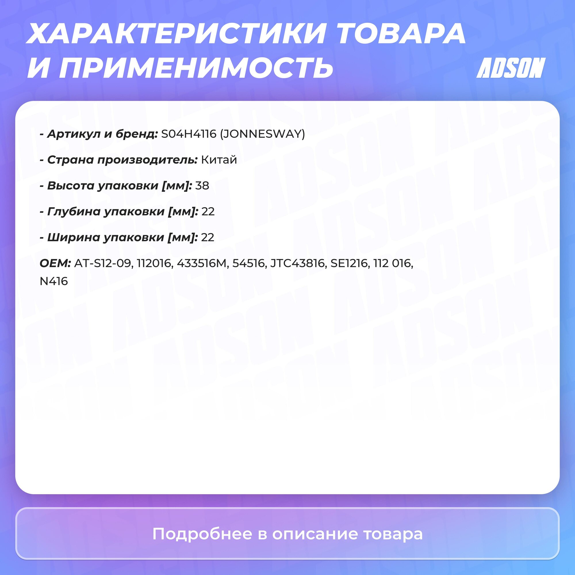 Головка торцевая марки ''Jonnesway'' 1/2" 16 мм. Основная разновидность рабочих насадок сборного слесарно-монтажного инструмента - это торцевая головка. Торцевые головки разделяются по геометрии рабочего профиля, по длине и по назначению. Такие инструменты обеспечивают наилучшие условия для приложения рабочего усилия по сравнению с другими видами инструмента для работы с внешними рабочими профилями. Шестигранный рабочий профиль считается наилучшим с точки зрения приложения максимальных рабочих нагрузок, передаваемых крепежной детали. Система инструмента с присоединительным квадратом 1/2'' DR является сегодня самой универсальной, покрывая самый большой диапазон размеров от 8 до 36 мм. За её рамками находятся лишь несколько самых мелких размеров и размеры крепежа, применяемые в крупногабаритных конструкциях. Данная система самая ''богатая'' по количеству разнообразных насадок, вариантов переходников и приводов и поэтому инструмент с присоединительным квадратом 1/2'' DR является основой, на которой строится вся система сборного слесарно-монтажного инструмента предприятия. Торцевые головки 1/2'' DR позволяют прилагать рабочие нагрузки, которые только в состоянии выдержать резьбовые соединения. Торцевая головка выполнена из хромованадиевой стали, имеет накатку и полуматовое хромоникелевое покрытие. Изделие изготовлено по стандарту DIN 3124, соответствует требованиям ГОСТа 25604-83.