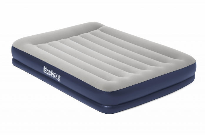 Двуспальная надувная кровать серии Tritech Airbed изготовлена по технологии I-Beam Construction. Между двумя слоями винила находится сетка из полиэстера, благодаря чему материал не подвержен деформациям и растяжениям. Внутренние перегородки под весом тела не деформируются и постоянно остаются устойчивыми. Вес распространяется равномерно по всей площади надувной кровати даже при одновременном размещении нескольких человек. Приятное флокированное покрытие поверхности кровати, которое напоминает велюр, не даст соскальзывать постельному белью и покрывалам, легко чистится без применения специальных средств. Кровать поставляется с встроенным электронасосом, который позволяет за несколько минут надувать и сдувать кровать, а также дает возможность отрегулировать ее упругость. Насос подключается к стандартной электрической розетке. При отсутствии электричества, кровать можно накачать обычным механическим насосом или насосом от автомобильного прикуривателя. Для этого кровать снабжена специальным клапаном для подключения внешнего насоса. В комплект входит удобная сумка для переноски кровати и специальная самоклеящаяся заплатка.