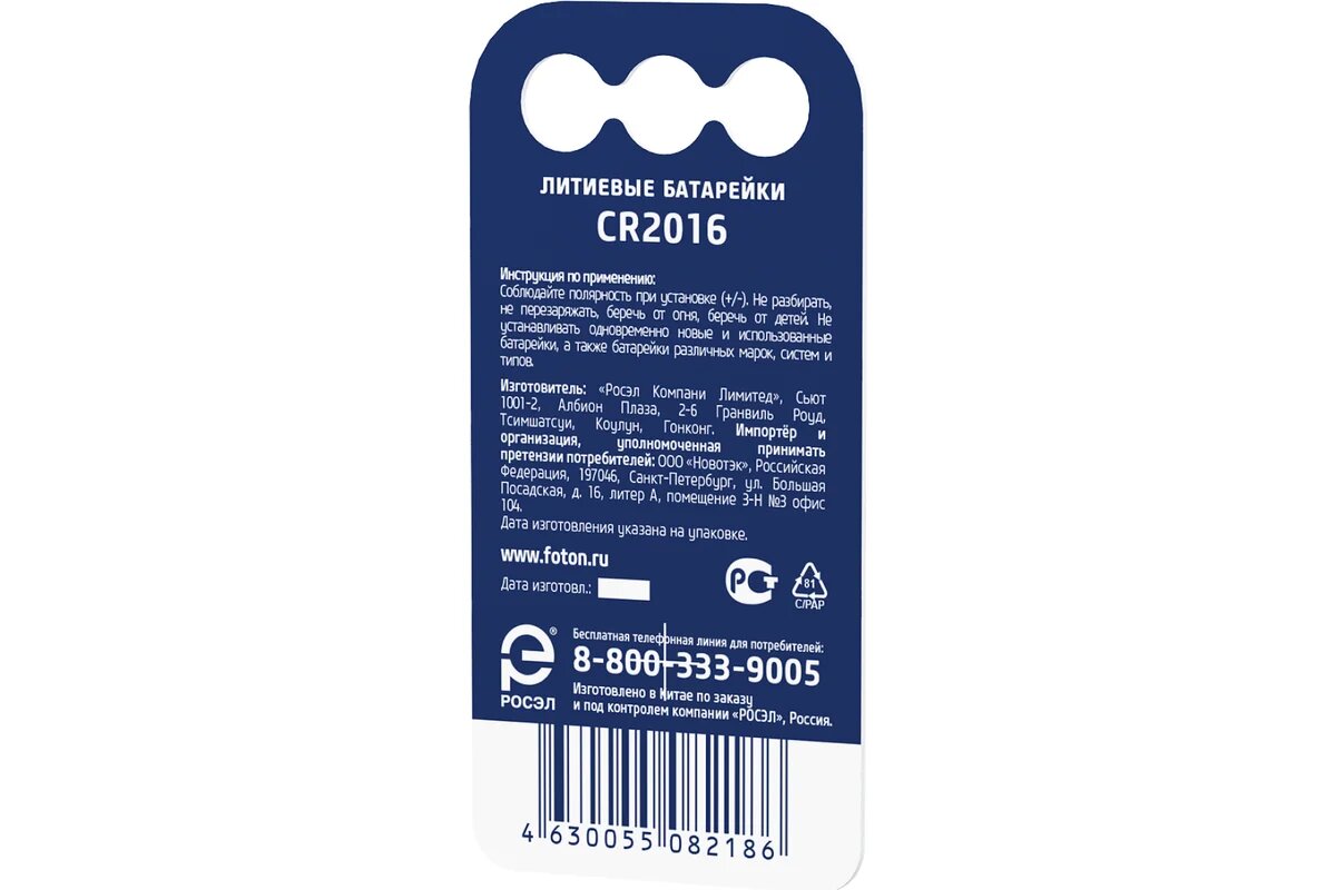 батарейка ФОТОН CR2016 BP1 1шт (23619)