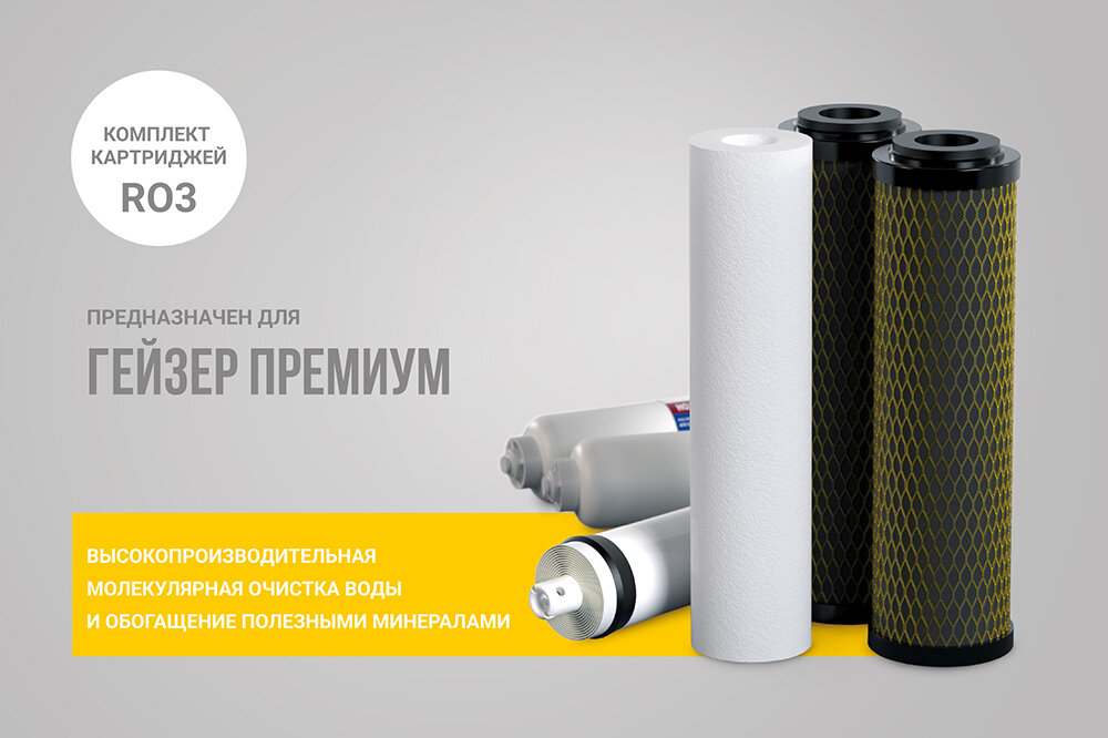 Мембранный фильтр Гейзер поставляется в полном комплекте изделий, которые необходимы для применения сразу после установки. Все элементы, комплектующие сертифицированы для контакта с пищевыми продуктами. Корпуса для всей системы выполнены из термопластика ПЭТ, который обладает высокой устойчивостью, прочностью и низким коэффициентом трения. Система очистки происходит на обратноосмотической мембране при давлении не ниже 3 атм.