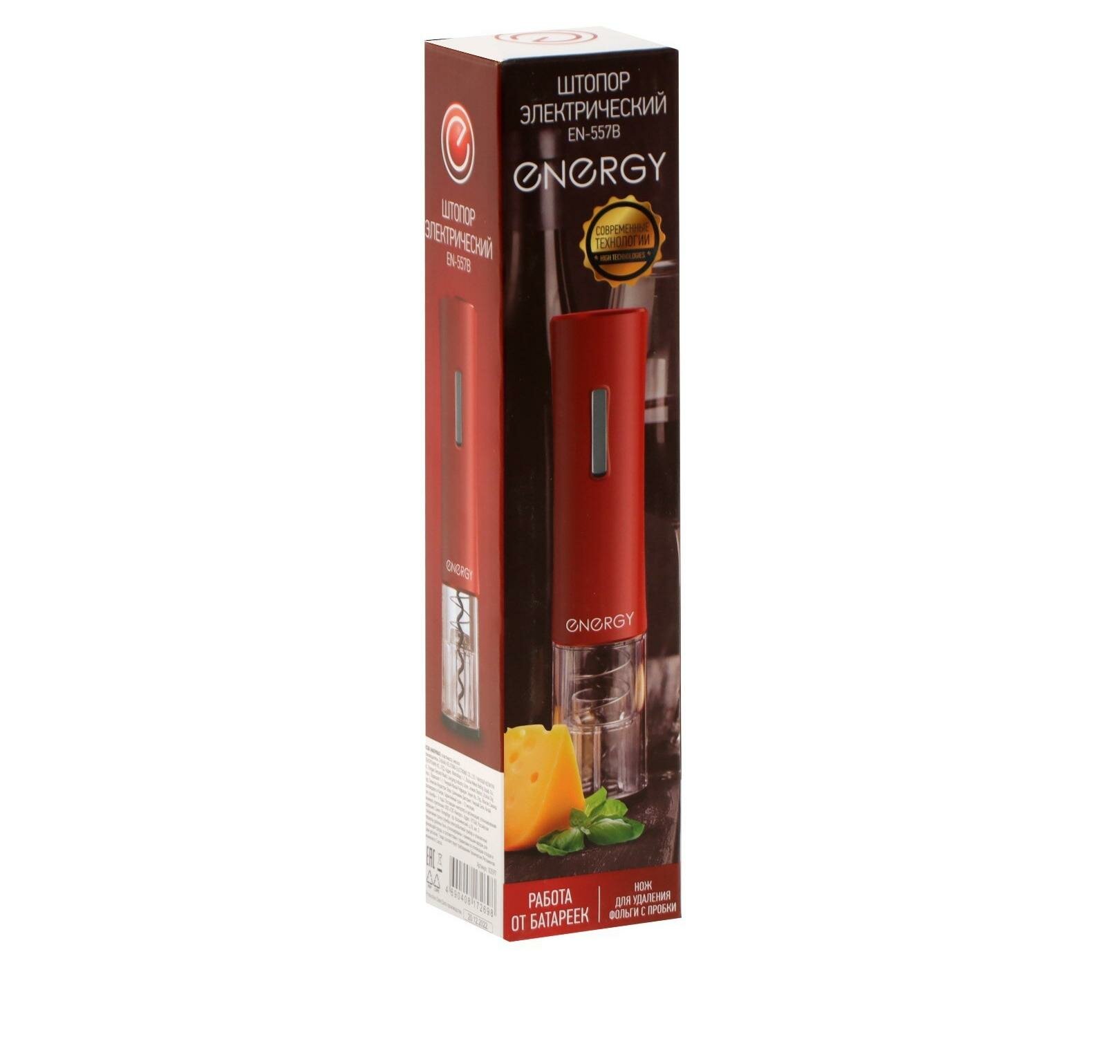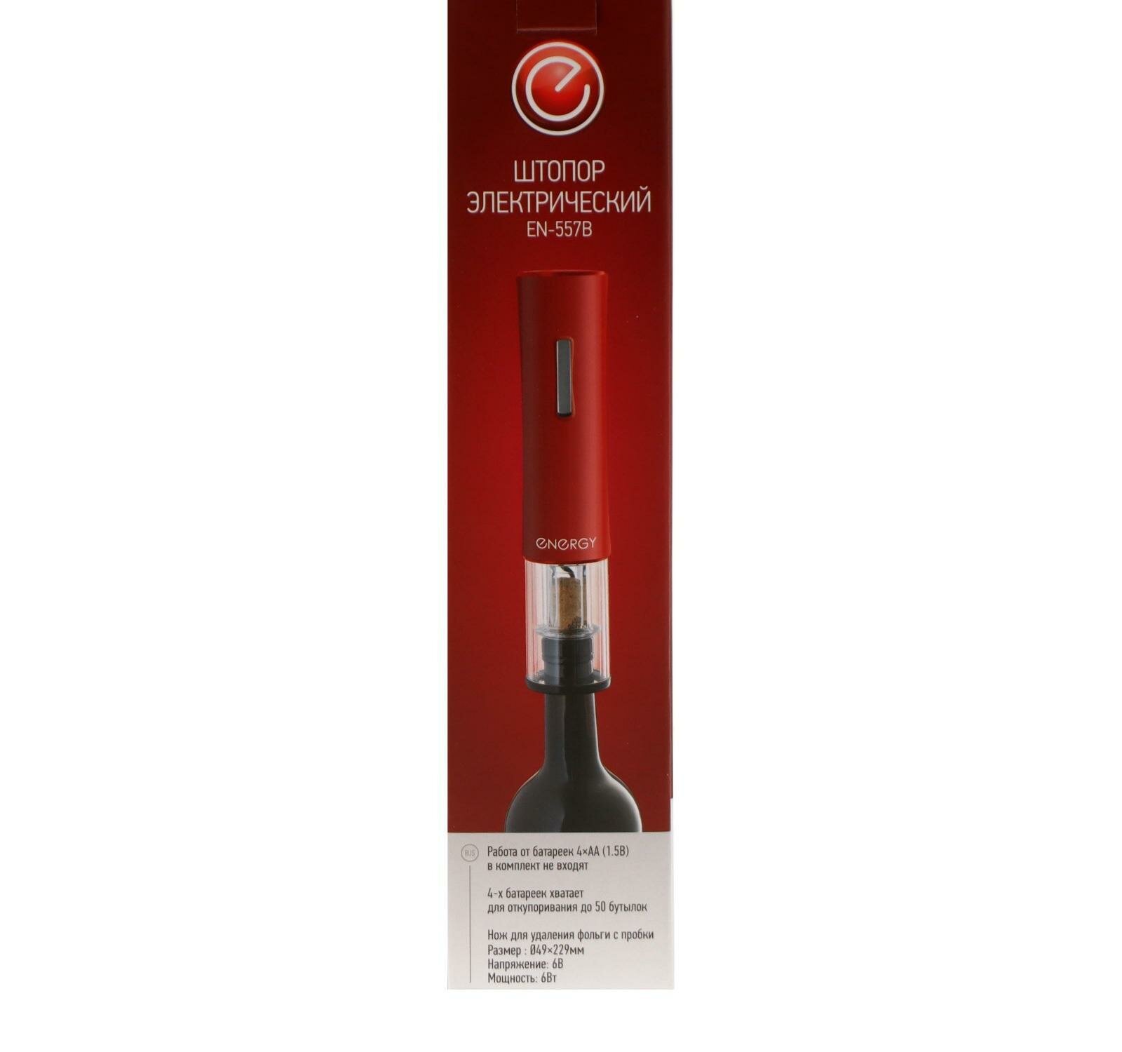 штопор автоматический ENERGY EN-557B от батареек красный