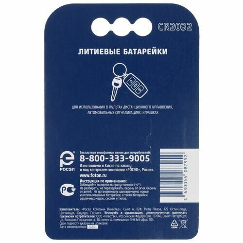 | Типоразмер | CR2032 |