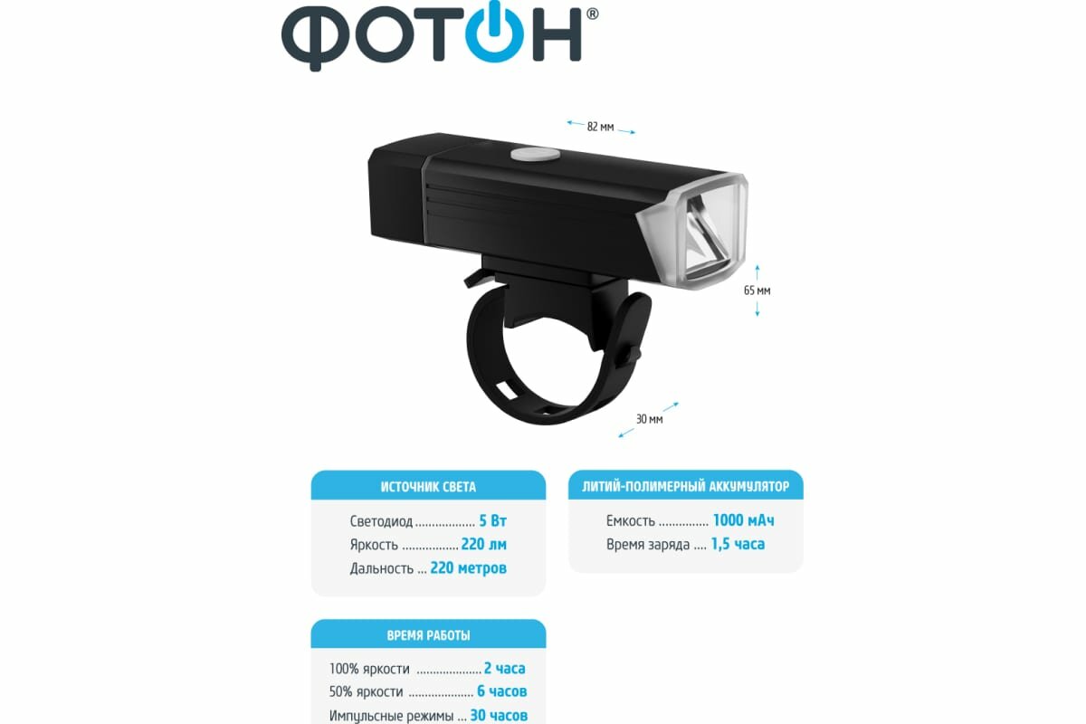 фонарь велосипедный ФОТОН аккумуляторный 5Вт черный CLA-1140F