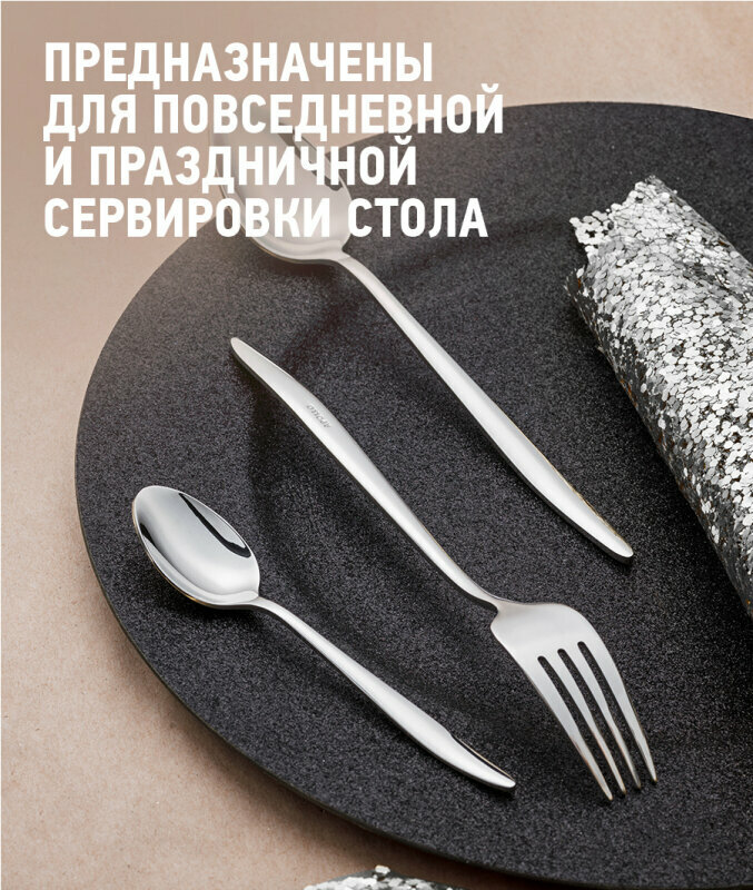 Столовые приборы Lungo предназначены для сервировки стола, прекрасно подойдут для ежедневного использования и будут уместны за любым праздничным столом. Благодаря хорошей обработке и оригинальному дизайну, столовые приборы изысканно дополнят сервировку.