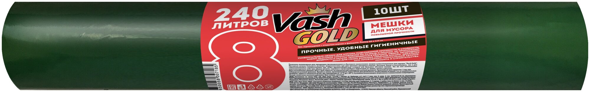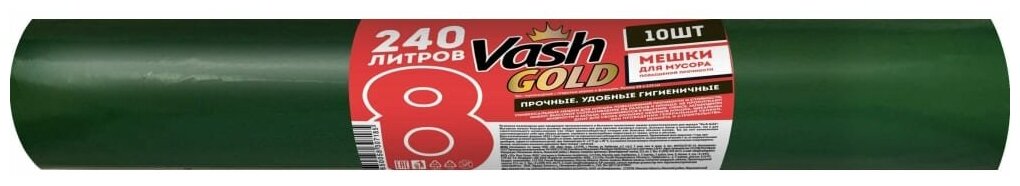 пакеты для мусора VASH GOLD 240л 124х89см 40мкм 10шт зеленые (307185)