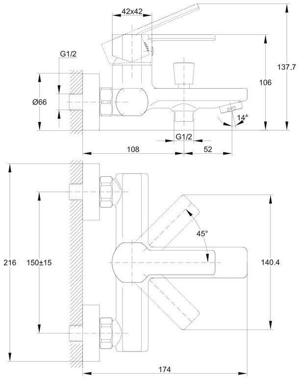 Смеситель подходит как для стандартных ванн, так и для душевых кабин. Благодаря небольшим размерам он не занимает много места и легко монтируется даже в самых маленьких помещениях.